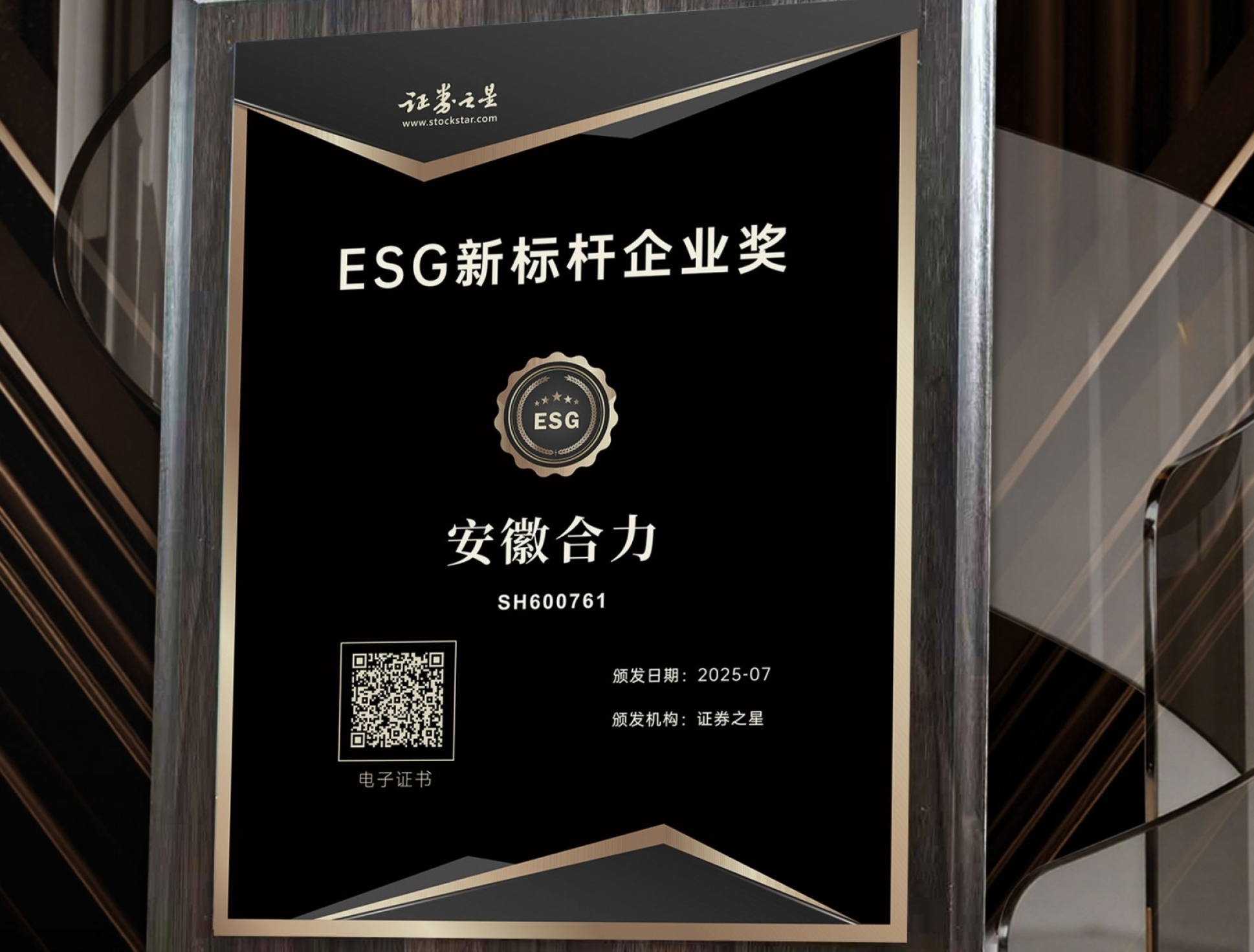 聚合力,提升可持續的工業(yè)未來(lái) 近日,證券之星第三屆ESG新標桿企業(yè)評選結果揭曉,安徽合力憑借在環(huán)境、社會(huì )和治理(ESG)領(lǐng)域的卓越實(shí)踐,榮獲“ESG新標桿企業(yè)獎”。該獎項是由證券之星聯(lián)合妙盈科技等專(zhuān)業(yè)權威機構,在中國首席經(jīng)濟學(xué)家論壇等指導下設立的ESG...