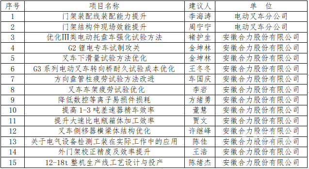 安徽叉車(chē)集團多個(gè)項目在安徽省職工技術(shù)創(chuàng )新競賽中獲獎
