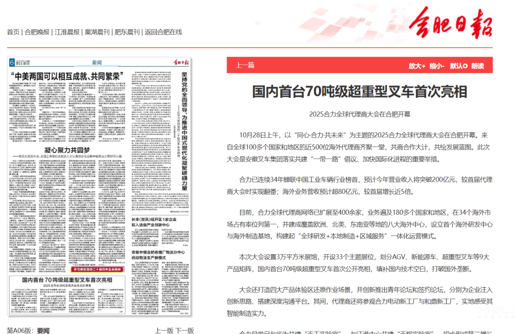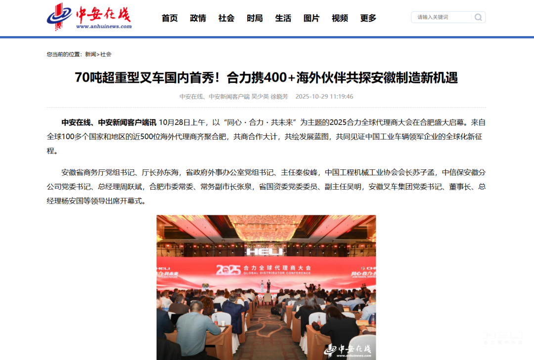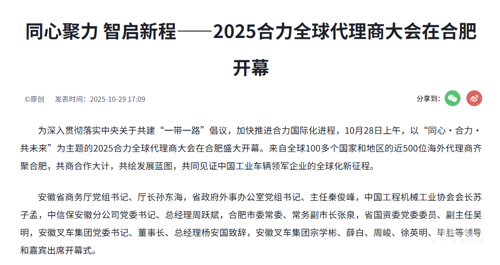 坐標合力!看媒體如何聚焦全球代理商大會(huì ) - 安徽叉車(chē)集團有限責任公司